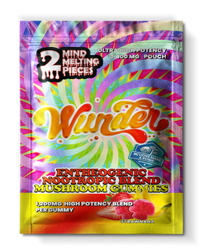 Potent. Compact. Flavorful. These Wunder High Mushroom Blend Gummies pack a powerful 1,200 mg entheogenic blend per pouch into a convenient 2-piece format.